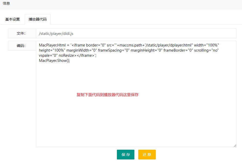 推荐使用一键导入播放器代码:完整播放器代码下载